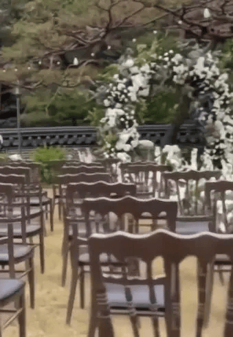 公开的视频展示了泫雅和龙俊亨室外婚礼大厅的一部分。展现出三清阁特有的传统氛围的青灯笼和充分利用自然风光的平静色调的装饰引人注目。白色绣球花、铃兰等色调相配的花卉装饰也营造出纯净、明朗的氛围,呈现出一场优雅婚礼的景象。