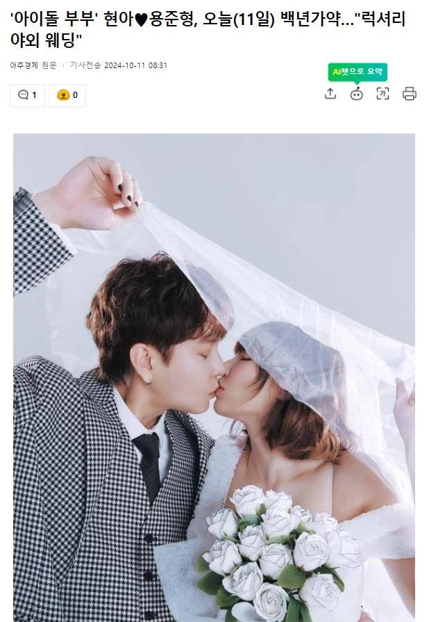 此前,龙俊亨和泫雅在7月份通过各自的经纪公司宣布了结婚的消息,随后,两人开始认真筹备婚礼,发布喜帖和婚纱照,尤其是婚礼画报,打破了现有的模式,给人一种专辑封面画报的感觉,其强烈的造型和时尚感引起了人们的关注。