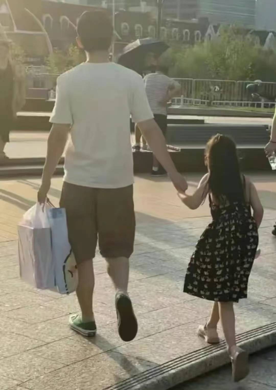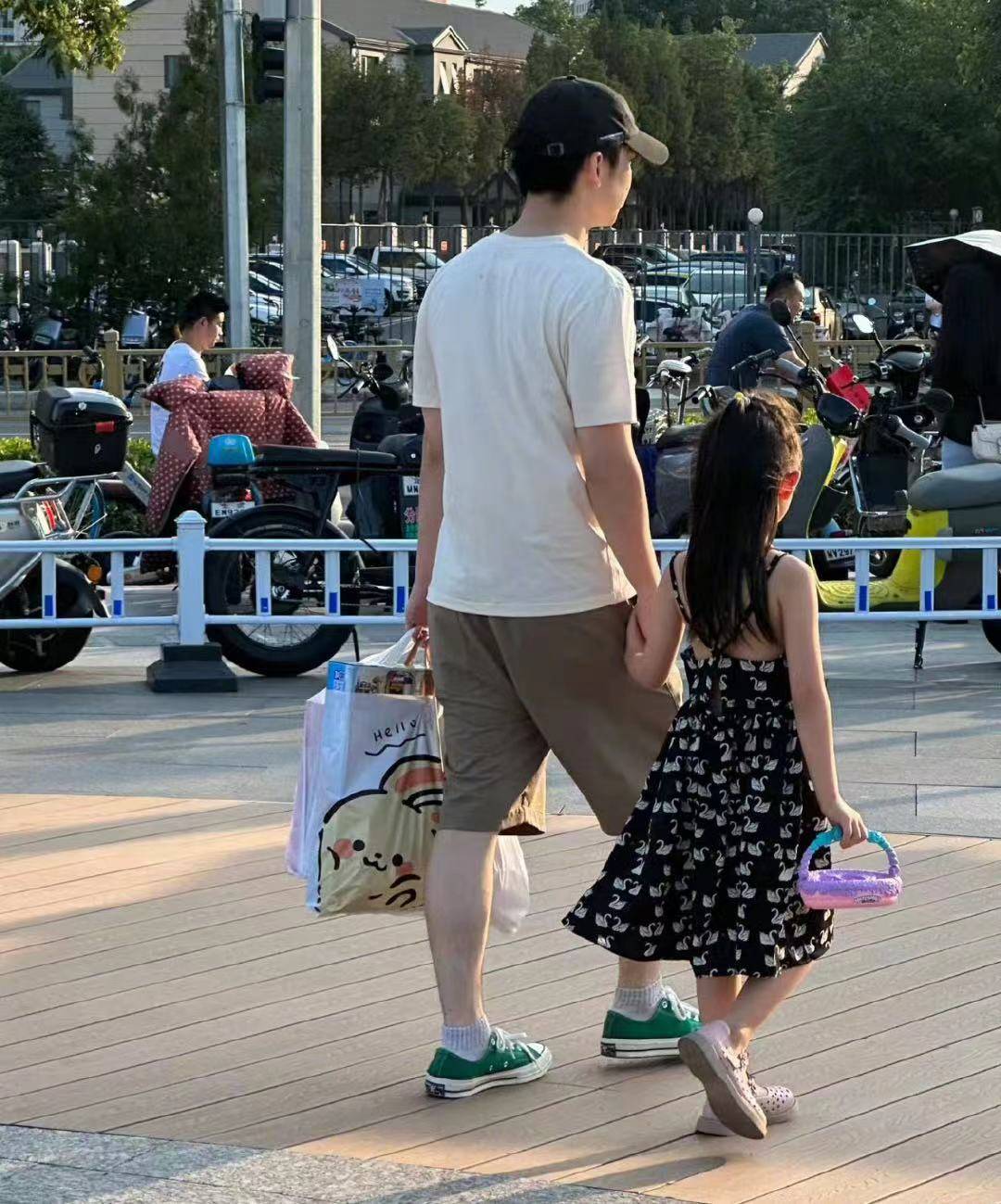六月份的时候,董子健和女儿在街边玩耍被拍,父女俩很快乐,虽然妈妈不在身边,完全没有影响他们的心情。