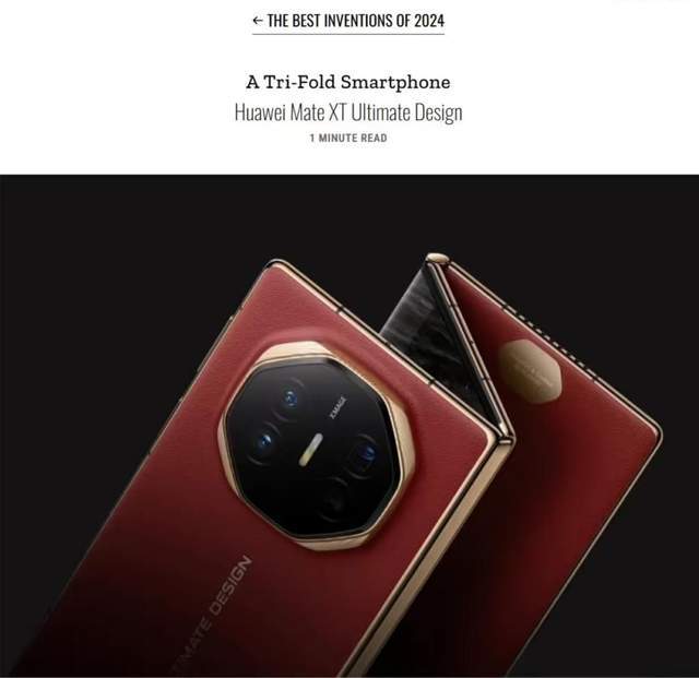 近日,《时代周刊》发布2024年最佳发明榜单,全球首款三折叠屏手机——华为Mate XT 非凡大师上榜,进一步彰显了华为在折叠屏和智能终端技术上的领先地位。