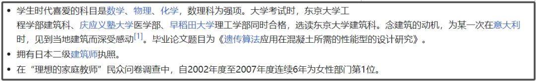 除了娱乐圈本职工作,菊川怜身上还有一个广为人知的标签,那就是“学霸美女”,不是解个二元一次方程就被夸学霸的那种哦,人家正经毕业于东京大学工程建筑系,拥有二级建筑师证书。