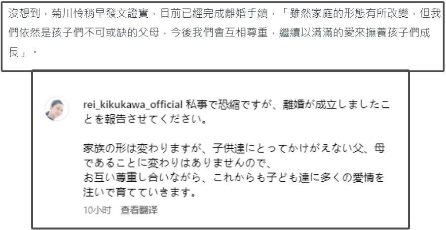 家暴消息前脚被曝,菊川怜后脚就宣布了离婚,那叫一个干脆利落,不仅如此,从菊川怜透露的消息看,她应该是拿到了孩子抚养权,对外宣称和男方一起依旧是孩子们不可或缺的父母。