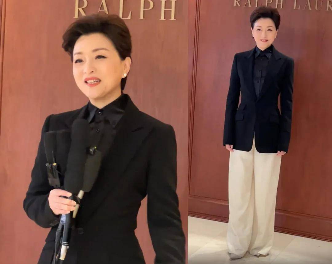 杨澜的黑白西服套装虽然不显腿长,但没有遮掩她知性的气质,非常大气。