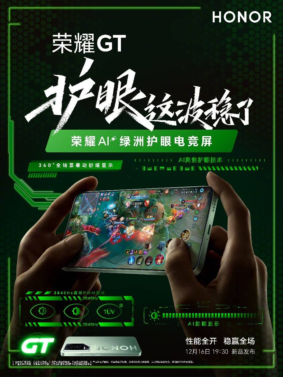 相信已经有很多朋友迫不及待上手体验这款手机了,那就让我们锁定12月16日晚19:30荣耀新品发布会,期待荣耀GT正式亮相。
