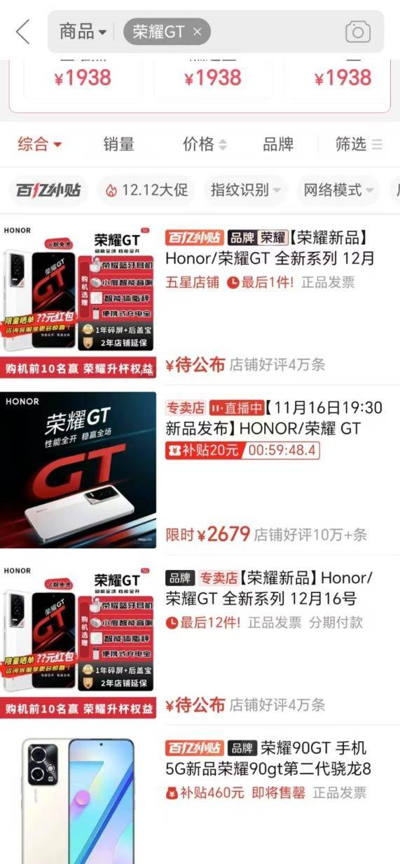 下周一荣耀GT就要正式发布了,今天有眼尖网友发现该机已经在拼多多悄悄上架,价格随之曝光,2699元起。不过根据以往经验,在官方确切消息出来前,平台信息未必完全可靠。