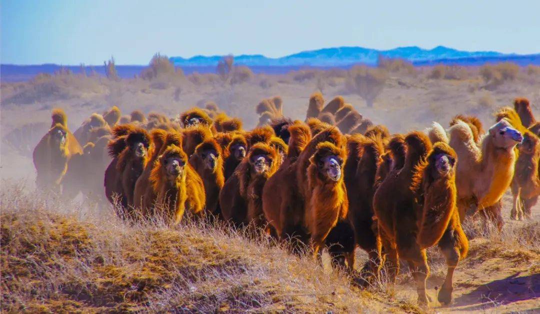 眼前仿佛浮现出驼群在无垠戈壁滩上自在奔跑、豪迈迈步的壮阔景象。