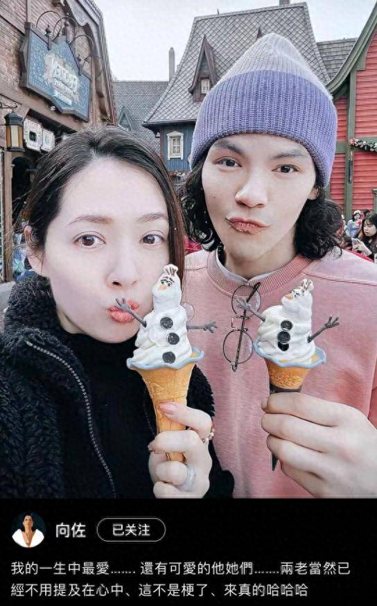 对着镜头,向佐与郭碧婷还一同手举冰淇淋合影留念,另外的照片中,夫妻两人和女儿一起拿手机自拍,郭碧婷明媚的笑容如冬如暖阳一样和煦,而一旁的向佐则不忘嘟嘴扮可爱。