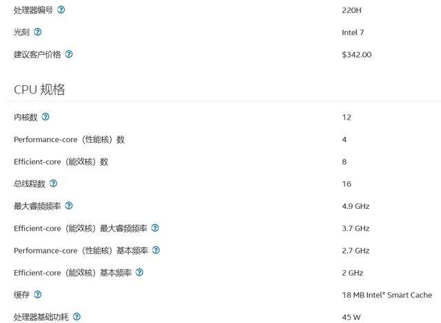 首先聊聊处理器,Core5 220H,在英特尔官网上的规格显示,它是一颗12核16线程的H处理器(具体是4个性能核+8个能效核),采用的是intel 7工艺(也就是10nm制程)打造,处理器基础功耗是45W,三级缓存18MB,支持DDR4 3200/DDR5 5200等内存规格,核显执行单元80EU。显然,从制程工艺来看,它就不是下一代平台的产物,而且规格看起来是不是很眼熟?是的,它的核心参数其实和第13代酷睿Raptor Lake中的i5 13500H十分相似。作为参考,i5 13500H同样是intel 7工艺,12核16线程的规格,基础功耗45W,三级缓存18MB,核显执行单元80EU。当然啦,作为2025年的Core5 220H处理器,它的CPU最高睿频和GPU频率也都往上提了一些,不过这不重要,只是让面子上过得去……