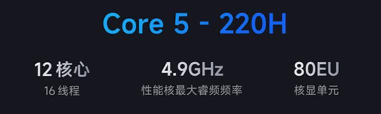 如上图所示,截图款的核心配置是Core5 220H处理器,32GB内存+1TB SSD的存储规格,常规价格5399元,部分地区(产品页面显示的是江苏、山东、厦门、湖北、吉林)可享20%补贴,到手价格为4320元。看到这里可能大家有些疑惑,对于电脑硬件有了解的小伙伴都知道,轻薄本上的英特尔酷睿处理器,要么前几年的酷睿i系列,要么是最新出的酷睿Ultra系列,酷睿直接加数字的酷睿5是个啥型号?这款机型又值得考虑吗?下面我们一一来看。