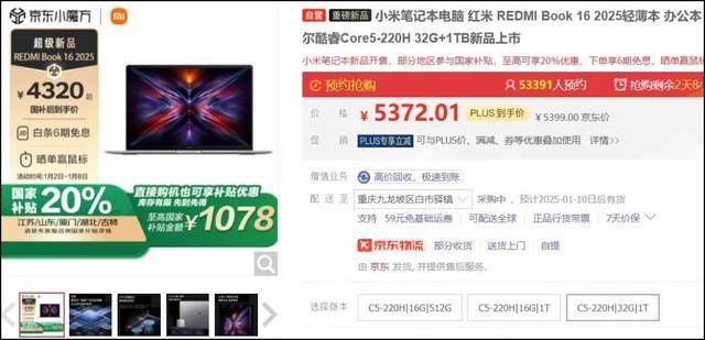 2025年已经来了,笔记本电脑核心硬件的的盛会CES2025也即将拉开帷幕,届时不仅有新一代的核心硬件平台发布,而且还会有一大批不同类型的新品机型到来。但在真正的新平台到来之前,已经有一台2025款“新”笔记本上市了,首发5399元部分地区还支持国补打8折,到手价格4320元,它就是REDMIBook 16 2025。