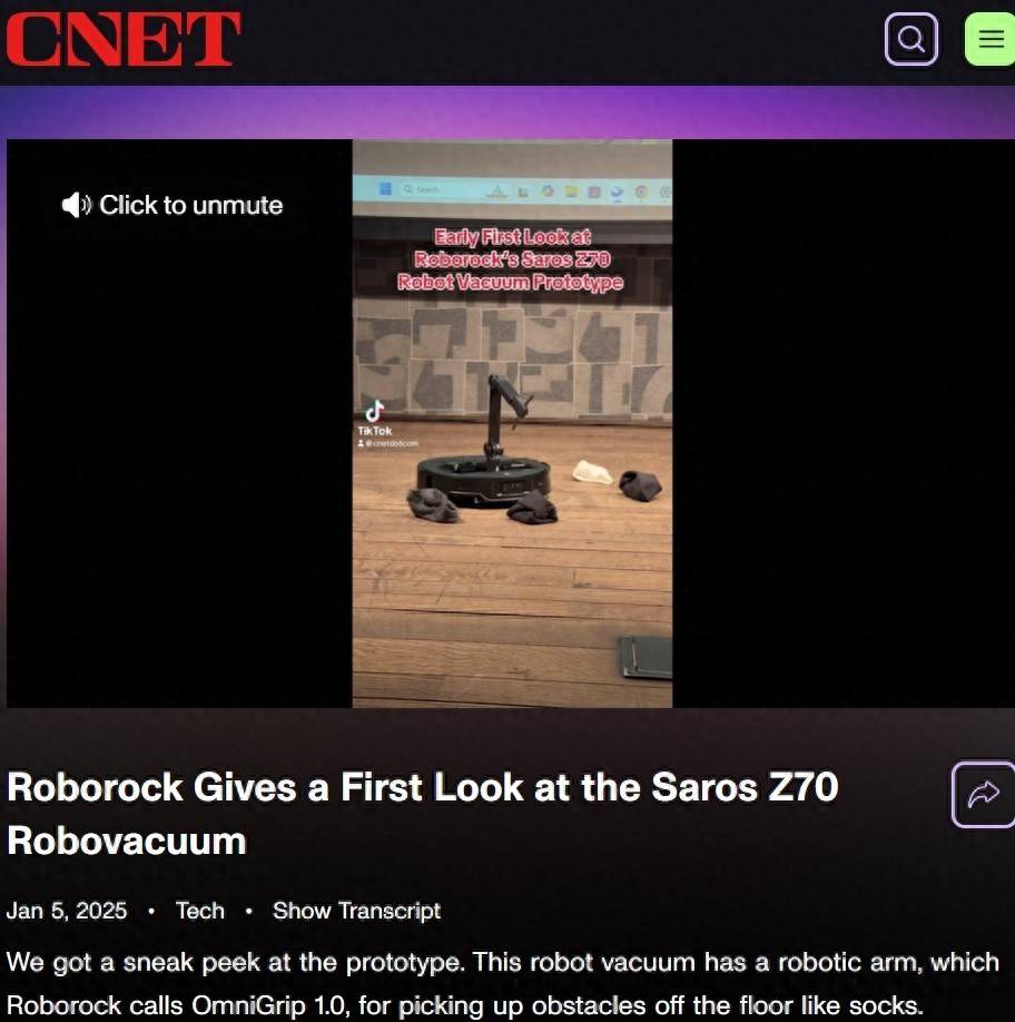 在2025年国际消费电子展(CES)上,石头科技推出的Saros Z70(国内型号G30 Space探索版)扫拖机器人凭借其革命性的仿生机械手设计,赢得了Forbes、CNBC、The Verge等全球头部媒体的广泛赞誉,并认为“该产品让我们看到石头科技正在引领智能清洁的未来”。