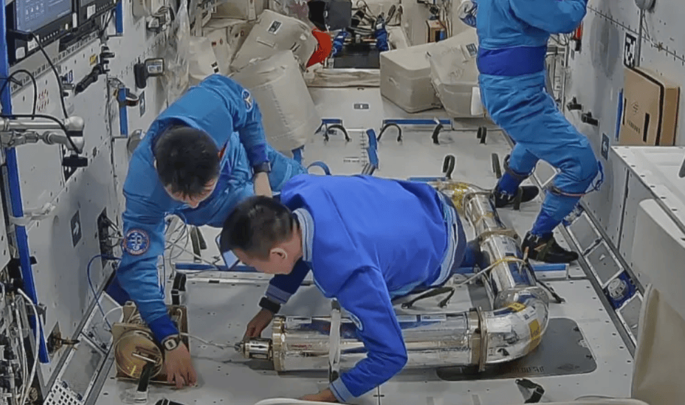 管道检测机器人在轨试验如何开展?据悉,航天员在轨搭建了包含不同直径的直管、弯管、锥管的模拟管道,在模拟管道内开展了机器人运动能力试验、收缩状态下管道机器人拉出试验和机器人状态微调后拉出试验。