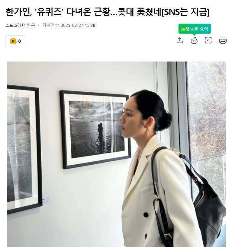 先来划个重点!27日,韩佳人在自己的SNS上发布了“去You Quiz了”的文字,并晒出了多张拍摄现场的照片。照片中,她身穿白色夹克搭配黑色裤子,梳着整齐的全背头发,整个人散发着干净又时尚的气息。特别是她高挺的鼻梁和精致的五官,简直让人感叹:“这颜值是真实存在的吗?”