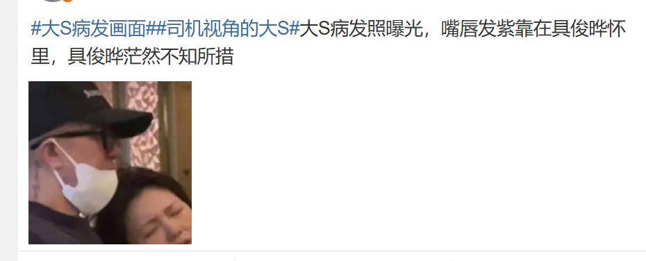 尤其是在一张曝光的照片中,具俊晔抱着难受的大S,看上去表情不为所动。