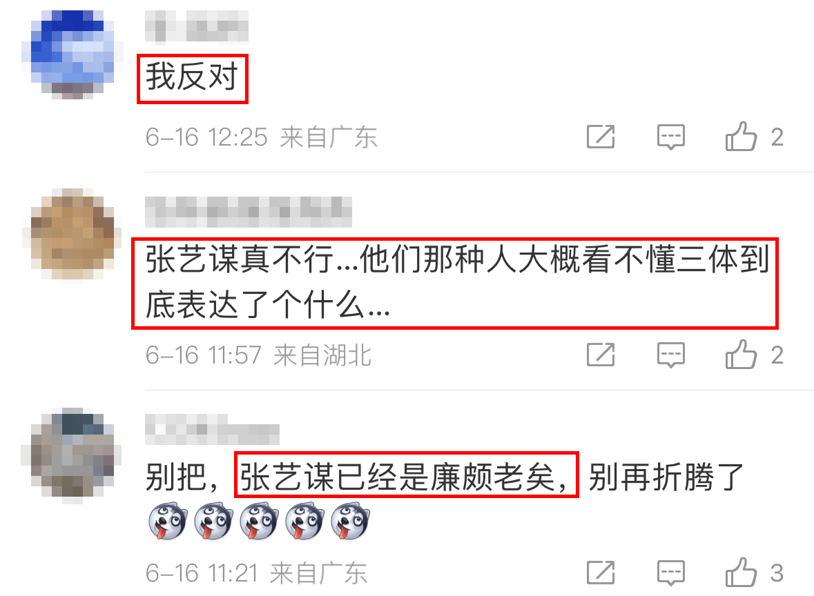 另一则评论则直言:“张艺谋已经是廉颇老矣。”