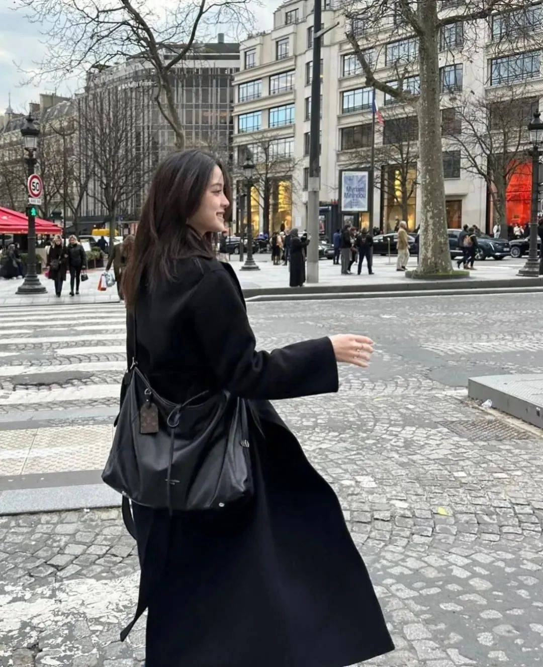 欧阳娜娜就喜欢背这样简约的包包,很有松弛感。