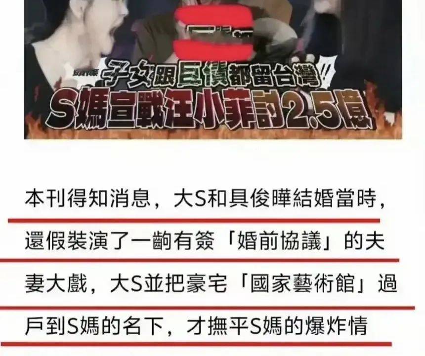 此前,台媒曾爆料称,大S与具俊晔签署了婚前协议,并将豪宅过户给S妈,这使得房产是否属于遗产变得扑朔迷离。