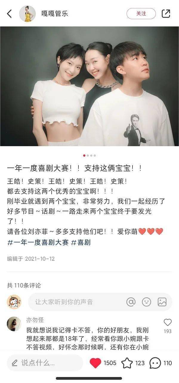 追过《喜剧大赛》的吃瓜er应该都知道管乐跟王皓在一起过,第一季节目时两人还处热恋期,虽然没有官宣,但很多暗戳戳的恩爱迹象。