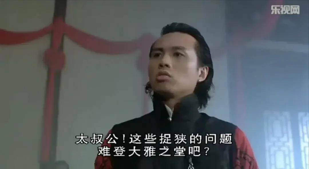 黄子华饰演反派“招积”,蔫坏型人格,从头坏到尾,最后被天降灵位砸中成了傻子,搞出了“天道好轮回”的喜剧效果,黄子华终场这么连唱带跳的,瞬间冲淡了他的反派形象,喜剧的味道“噌”就上来了。