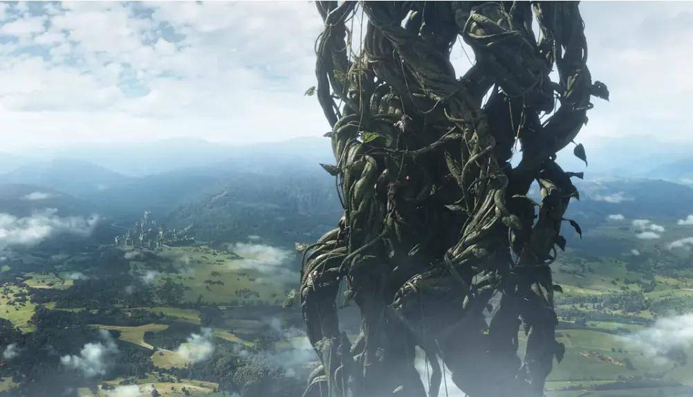 “豌豆”作为一种连接天界和人间的途径,它意味的不是什么神仙下凡,而是暴虐的巨人降临。与普遍意义上的敌人不同,人类之间的战争目的是征服,巨人对人类却是“灭绝”,因此影片塑造了一种“紧迫感”,尤其是当巨人首领拿到令巨人臣服的魔法王冠后,就意味着制约他们的条件消失了。