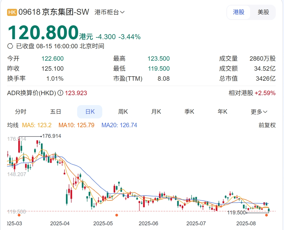 这种信心危机直接反映在股价上:财报发布当日京东港股下跌3.44%。