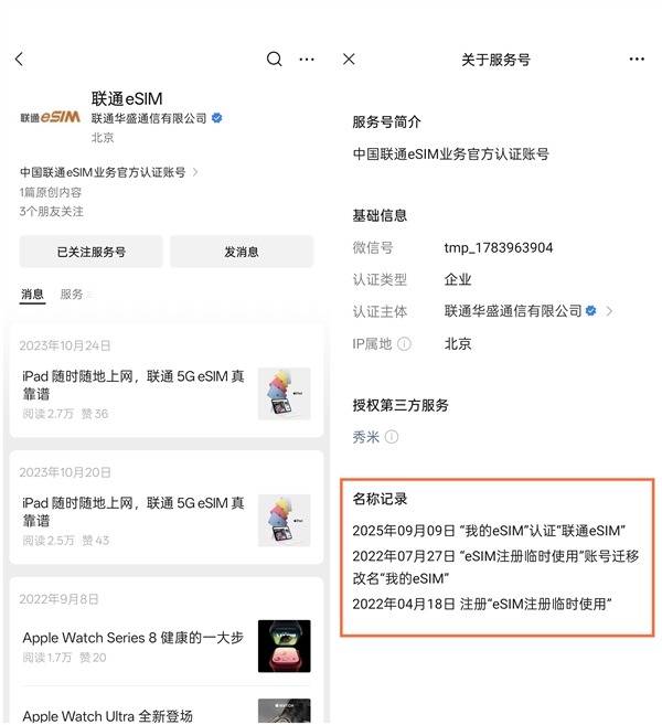 这点在官网iPhone17 Air的数据介绍里苹果也给出了答案,而在昨天联通的ESIM卡官方账号也是顺利上线,从侧面证明了这点。所以问题就在这,iPhone Air目前即便你有前想买,想用的话还得是使用联通网络