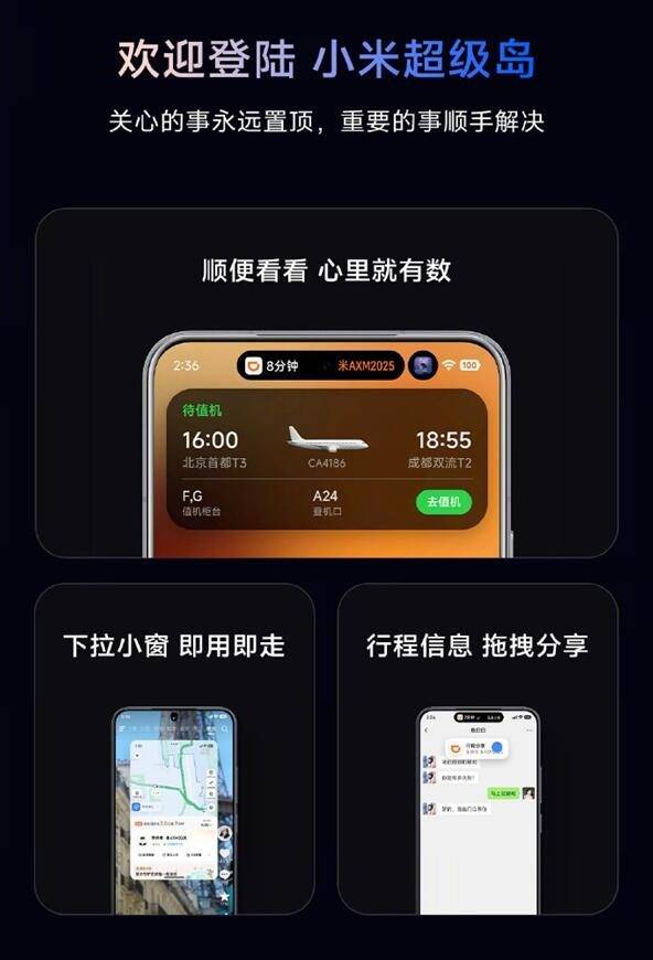 澎湃OS3则叫小米超级岛。支持重要通知、应用服务、设备状态三类信息常驻前台,可1次上岛3个通知,支持下拉小窗查看、长按拖拽分享,3岛切换自如,并且信息显示更全面。另外相册,文件夹也有较大改进