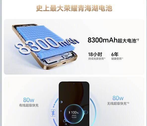 荣耀X70最大的优势就是续航,8300毫安的青海湖电池再次冲破荣耀Power的8000毫安上限,别小看提升的这300毫安容量,关键时刻可以多半个到1个小时的续航时间。其次是三防功能,从IP66-IP69防水防尘是全部认证,也是针对各种场景和路面做了全面防摔
