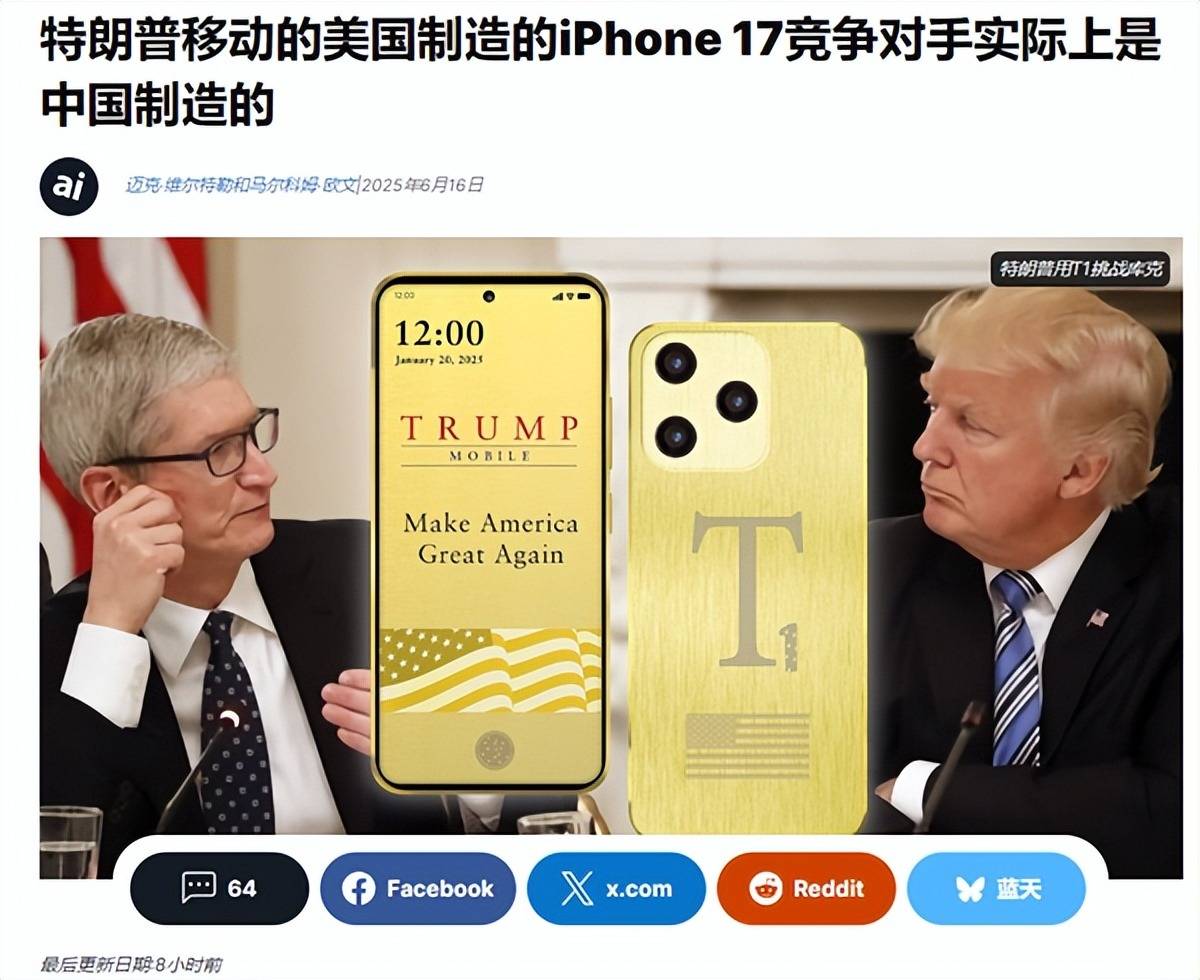 但库克很滑头,每次都敷衍了事,能躲就躲,特朗普自然很不高兴,于是两手对策来了,一个是威胁苹果如果不搬回iPhone生产线,就要对iPhone加征25%的关税,而另一个就是近日推出的特朗普手机,该机预计9月发布,选择和苹果iPhone17系列同期亮相
