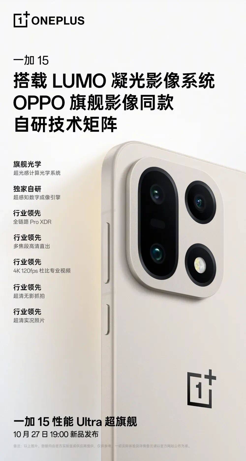 最新的新机预热剧透显示,一加15开启一加影像的新阶段。首次搭载 OPPO“LUMO 凝光影像”,这是 OPPO 最高规格的影像技术,一加 15 也将带来至今最强的影像表现。